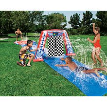 Ready, set, GO!!Test your speed with the Banzai Speed Zone Electronic Raceway Water Slide!Press the start button the Digital Electronic Timer, a flash of red light... get ready...a flash of yellow light... get set... then green... now GO! The seconds will start to flash by as you make your way down the Speed Zone Raceway! Can you make it under the checker flags before the timer flashes the next number?! Yes! As soon as you cross the checker flags the timer stops, displaying your best time yet! Think you can beat it? Go again and find out! The Banzai Speed Zone Electric Racing Water Slide features: 15 ft. Lx 31in W water slide Inflatable Speed Zone Electronic Raceway arch Digital Electronic Timer with lights Easy garden hose hook-up Read more...