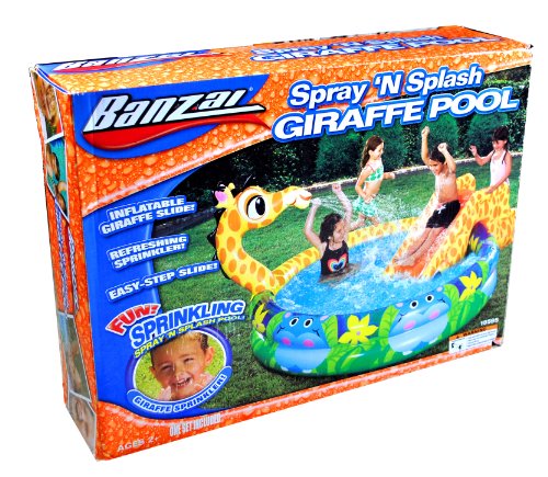 Banzai Spray 'N Splash Series Swimming Pool - GIRAFFE POOL with Inflatable Giraffe Slide, Built-In Sprinkler and 1 Repair Patch (Pool Diameter: 58") Review